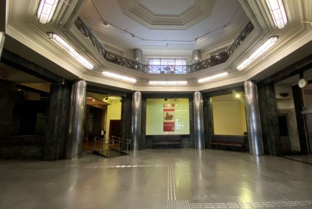 Com pé-direito de 13,5 m, o espaço integra o térreo ao 2º andar criando um vão livre onde se destaca o Vitral do italiano Henrique Zucca, do final dos anos 1930, cuja representação são trabalhadores e as riquezas de São Paulo.